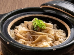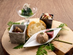 土鍋で炊き上げる炊き込み御飯には、山形県産の「雪若丸」を使用。他にも森のアミューズ(前菜)には山形のきく、メインには地元の銘柄牛「山形牛」や「米沢牛」を用意するなど地元山形の素材を使用した数々のメニューを提供いたします。
