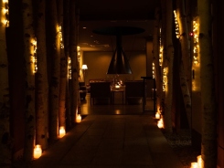 ロビーにはLEDキャンドルを、ダイニングには環境に配慮したエコキャンドルを使用。